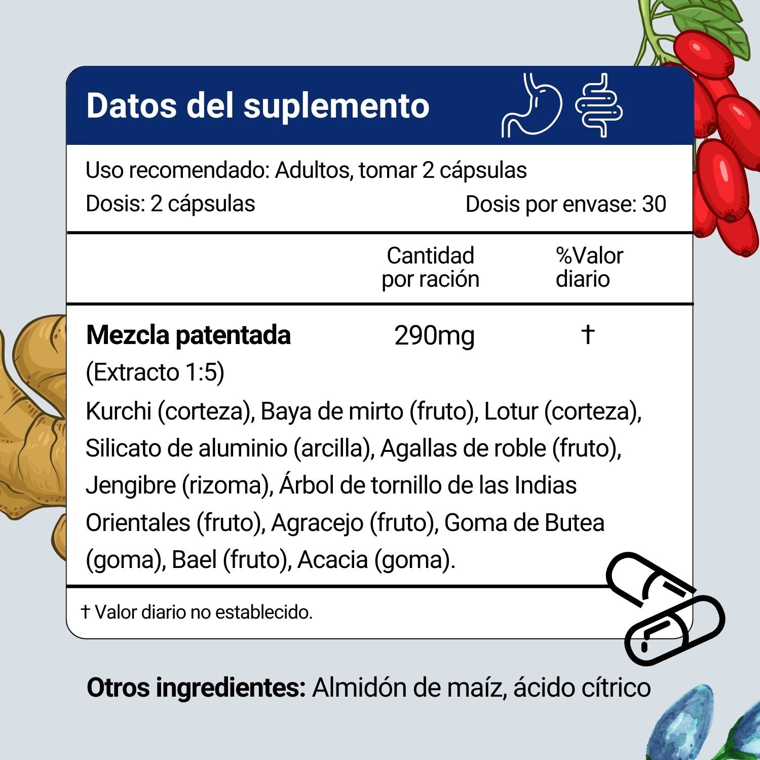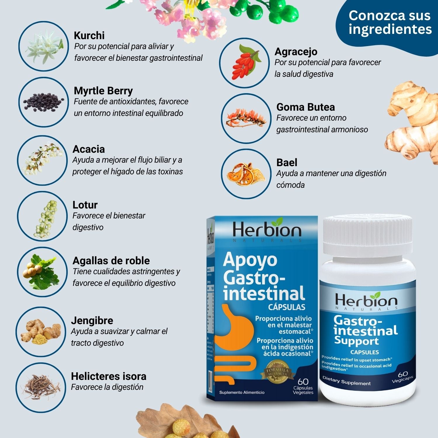 Esta fórmula totalmente natural combina una mezcla de hierbas potentes como el jengibre y el agracejo para aliviar el malestar, apoyar la salud intestinal, y mantener la flora intestinal saludable. Estas cápsulas veganas son fáciles de tragar y lo suficientemente suave para el uso diario.