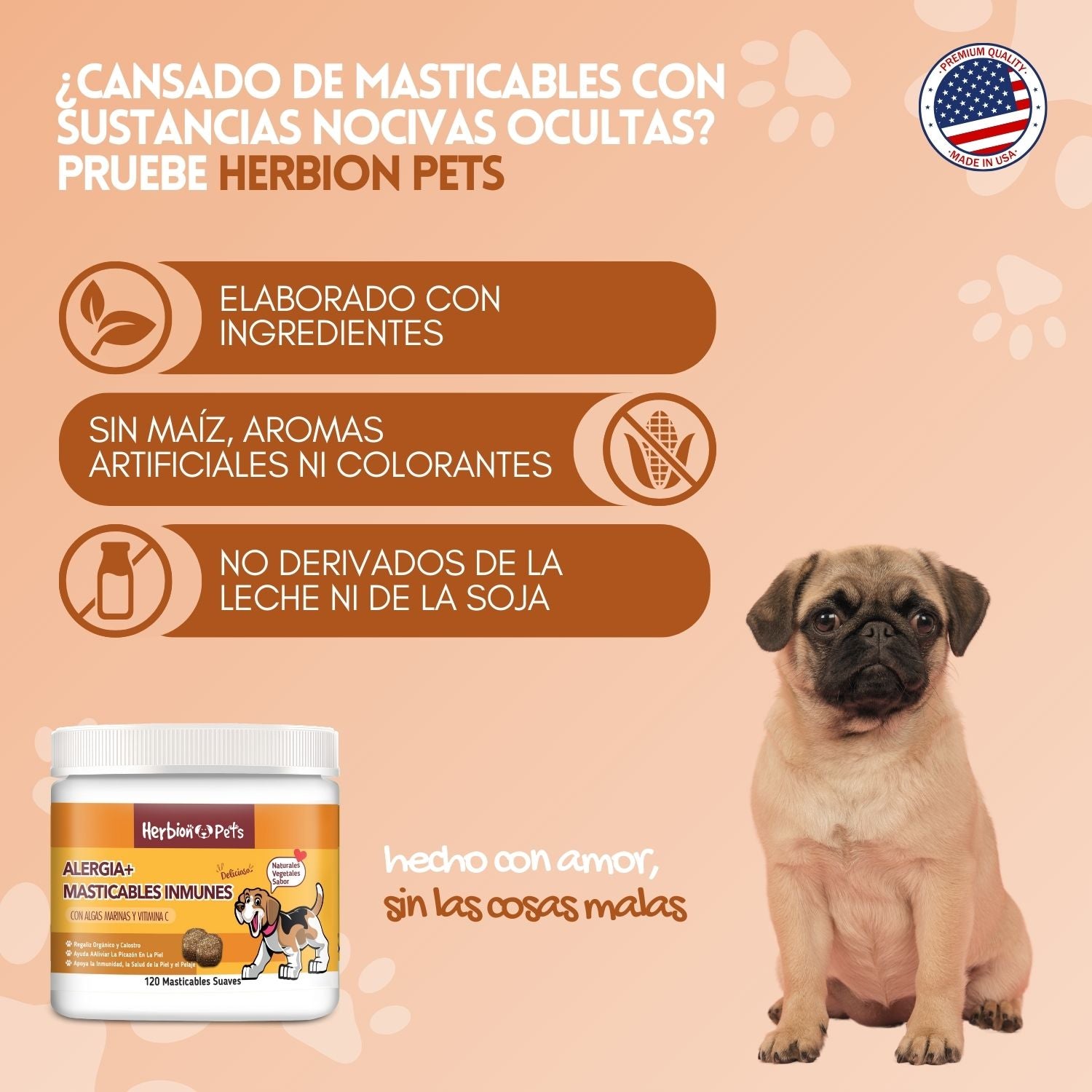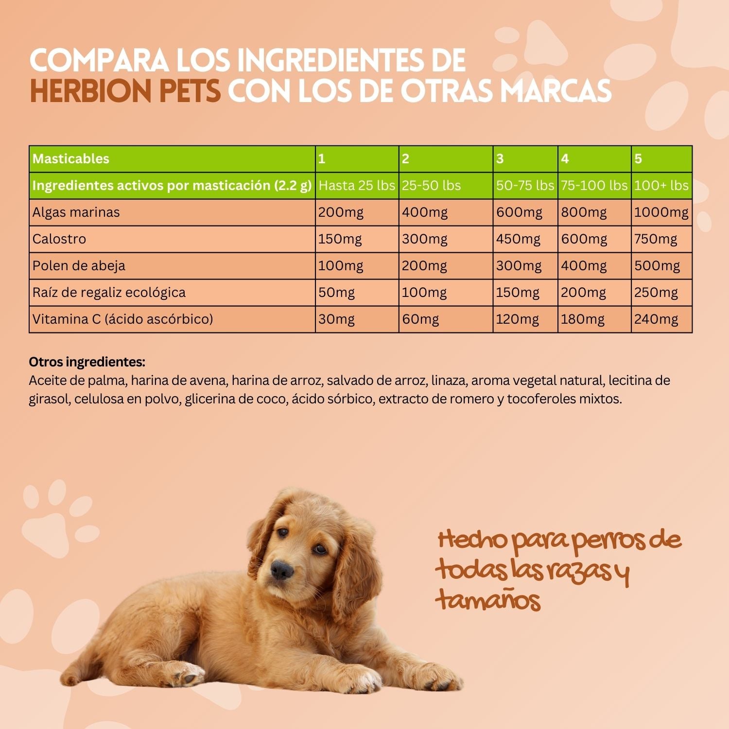 Repletos de algas marinas, calostro y vitamina C, estos deliciosos masticables con sabor a vegetales ayudan a calmar la picazón en la piel, reducen los síntomas de alergia y promueven un pelaje saludable. Fabricados en los EE. UU. con ingredientes totalmente naturales, nuestros masticables para alergias son seguros y efectivos para perros de 12 semanas en adelante.